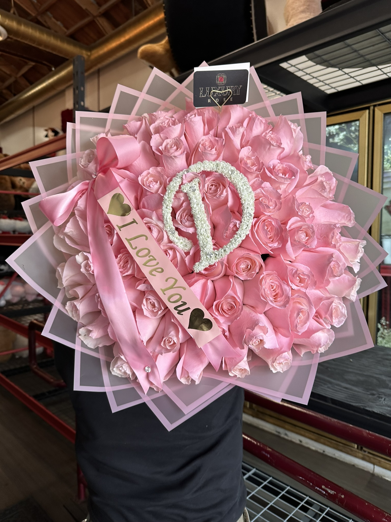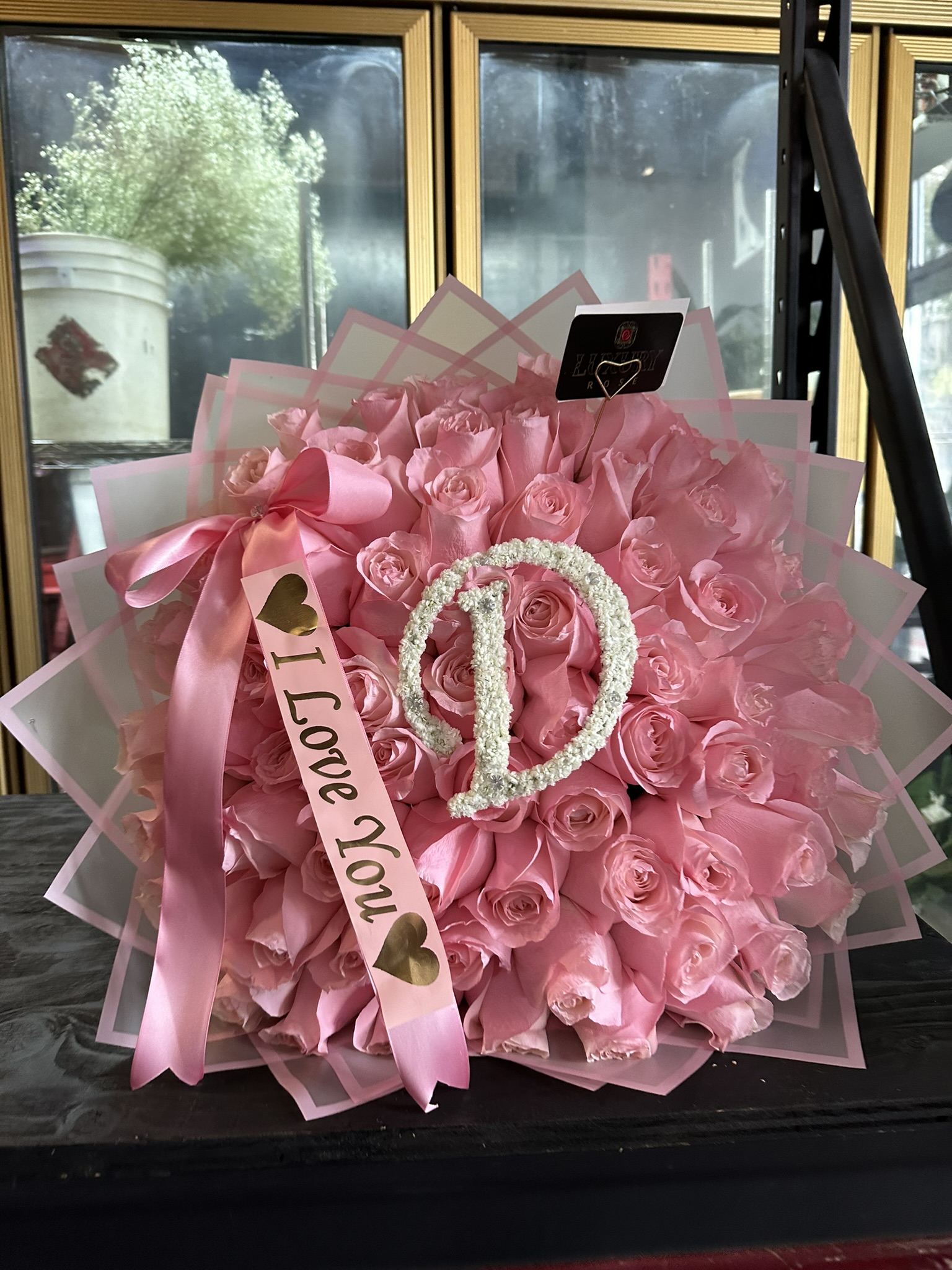 100 PINK ROSE BOUQUET WITH INITIAL "D"