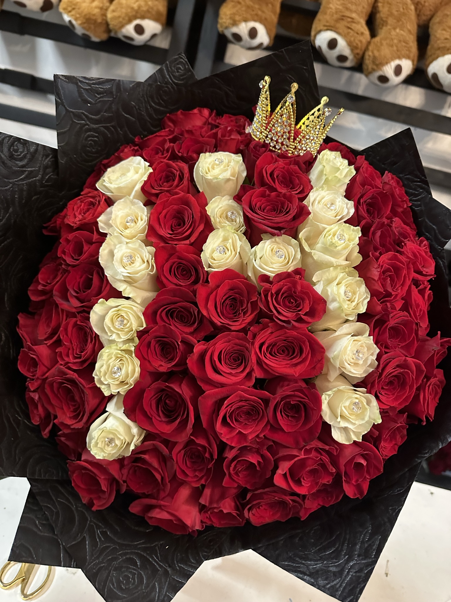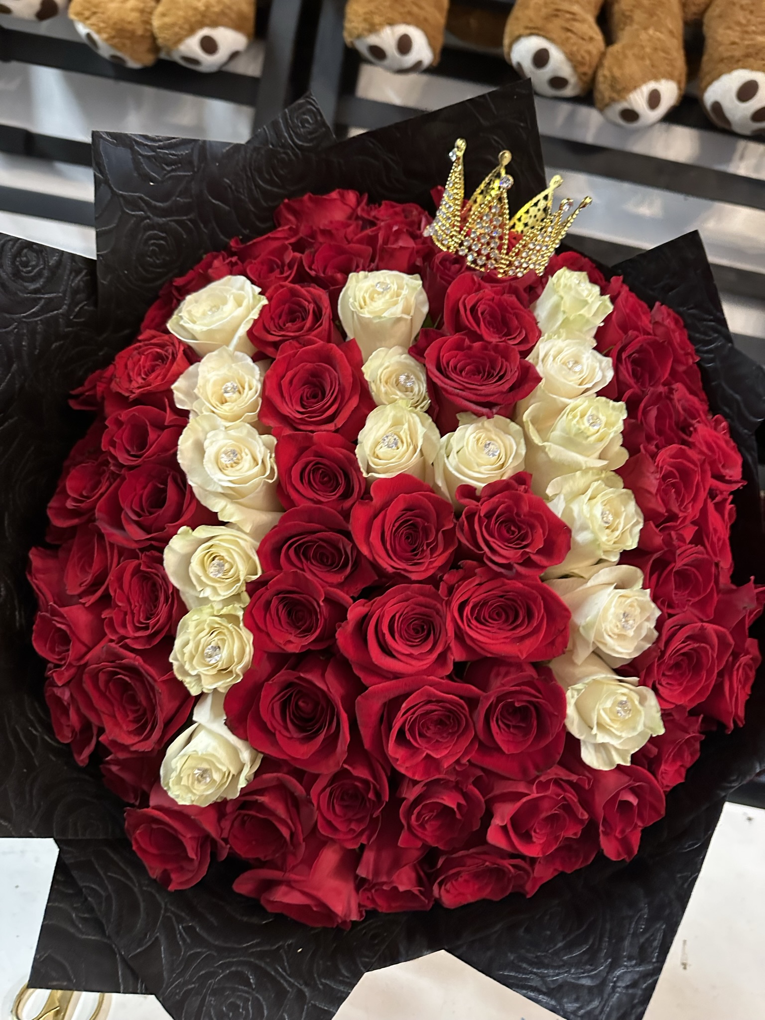 Custom bouquet #14 100+ Roses Red Rose Bouquet With White Roses 14 And Small Crown14 YEAR ANNIVERSARY BOUQUET$350.00PriceExcluding Sales TaxQuantity*Add to Cart