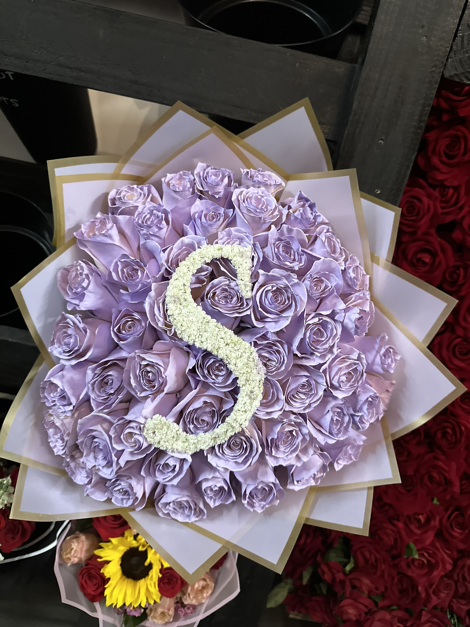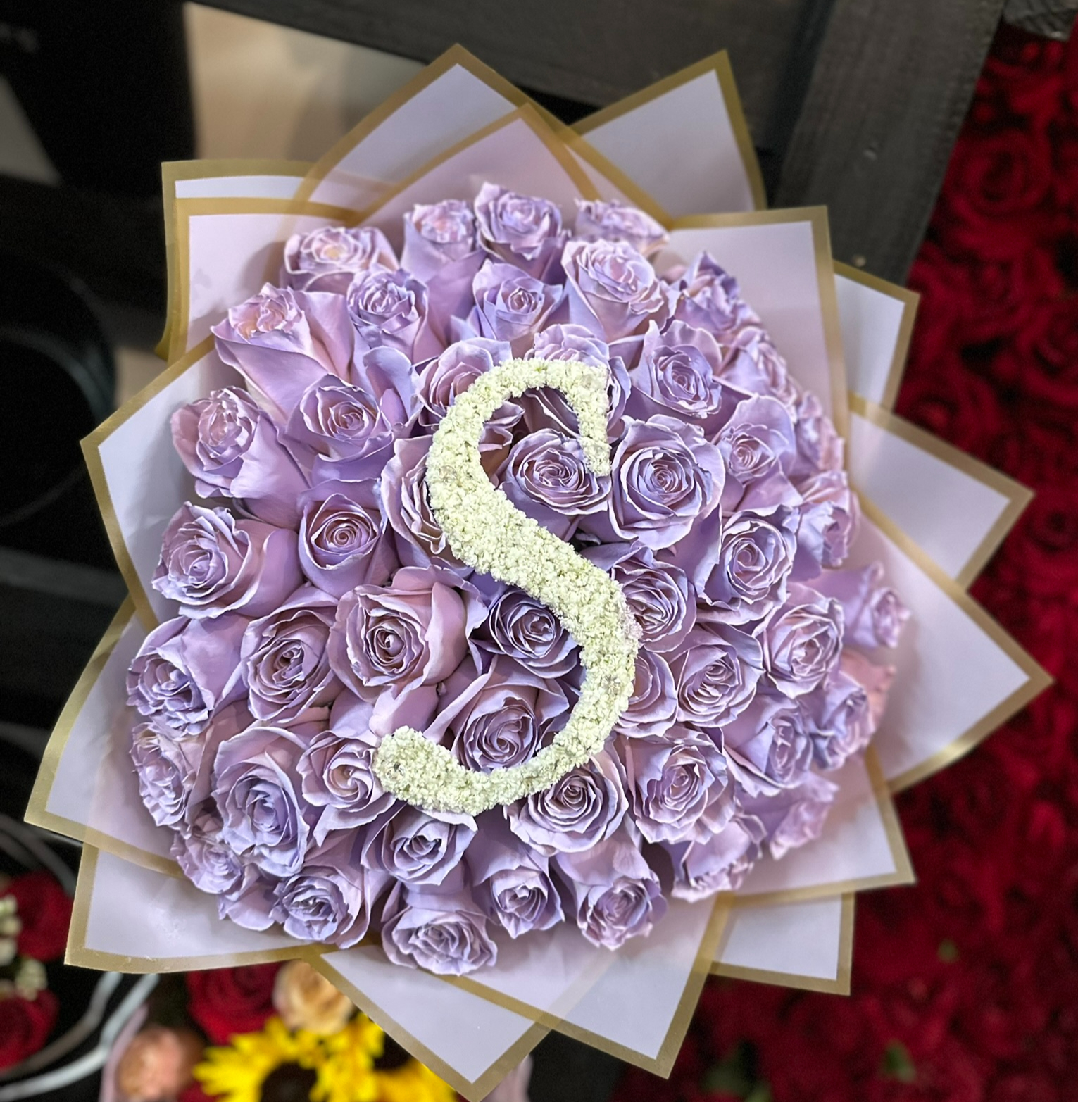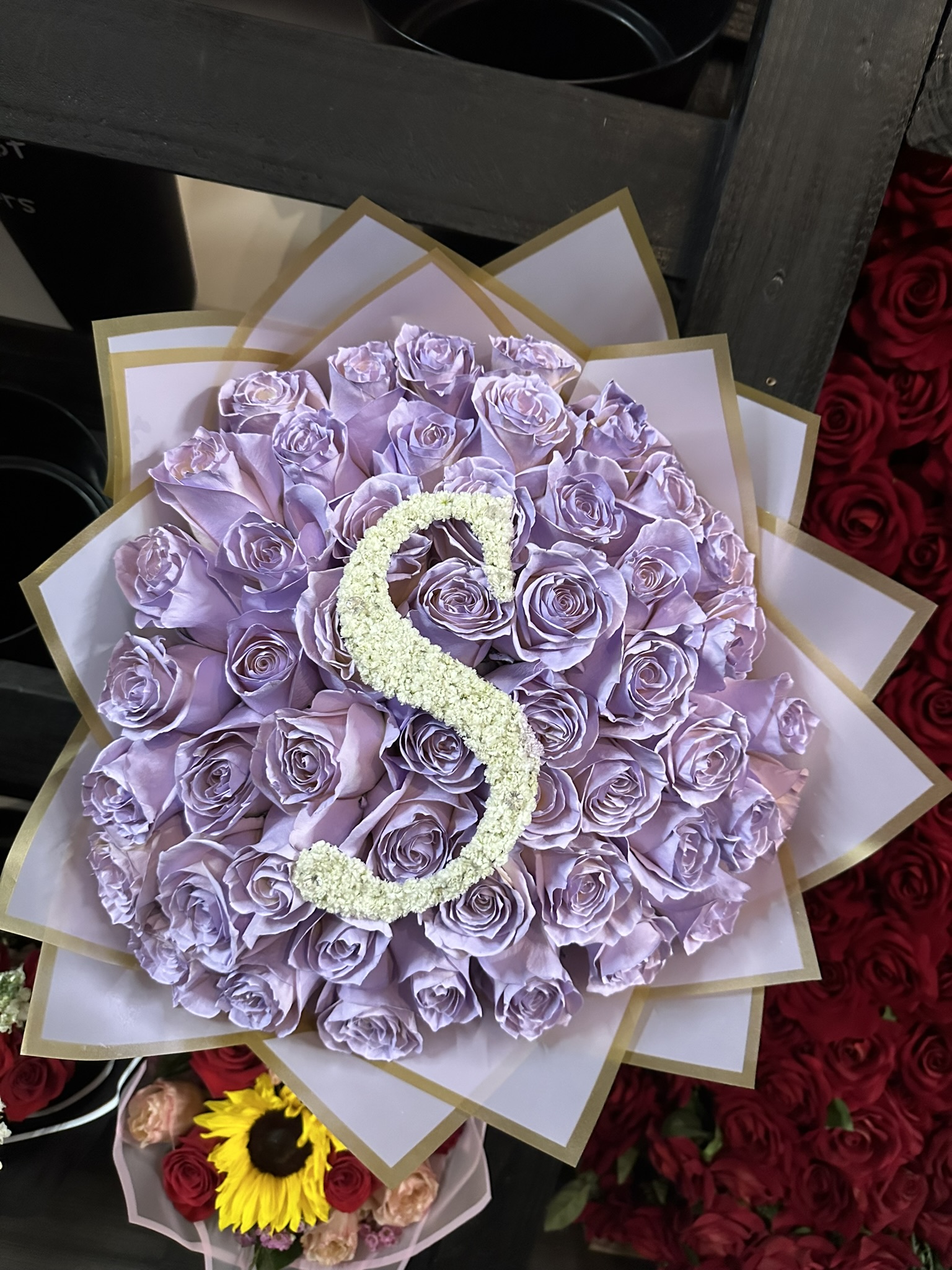 50 LAVENDER ROSE BOUQUET WITH INITIAL "S"