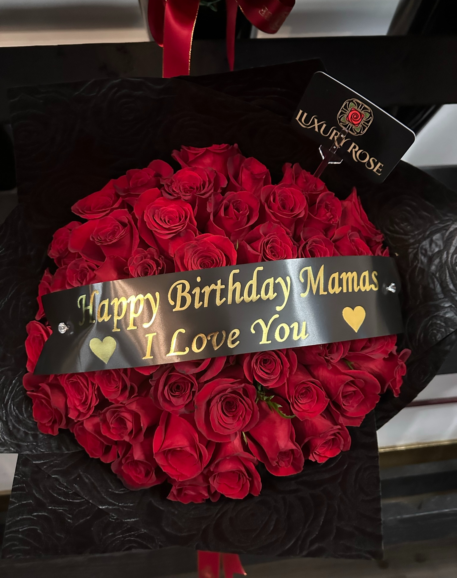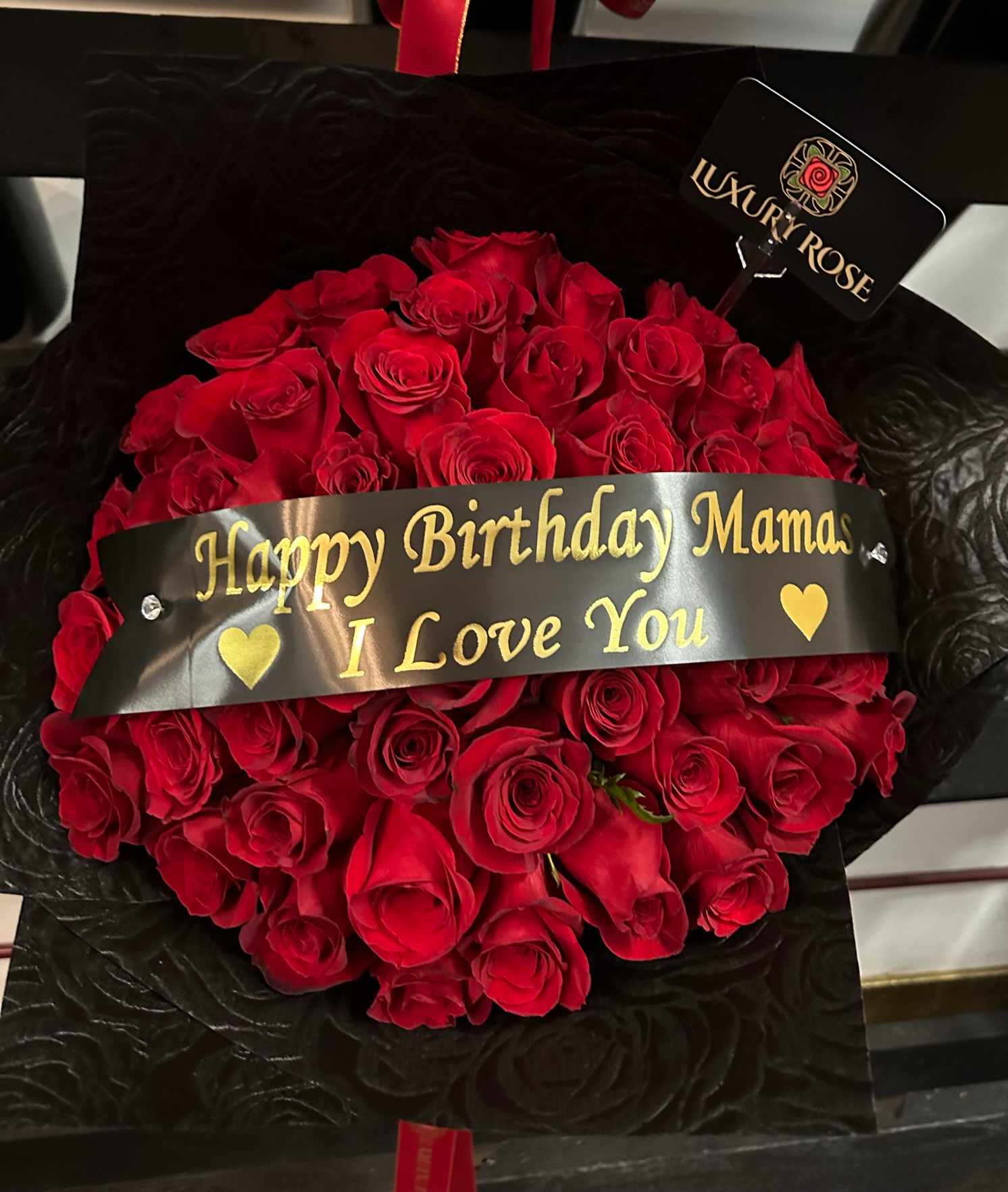 50 RED ROSES WRAPPED IN BLACK