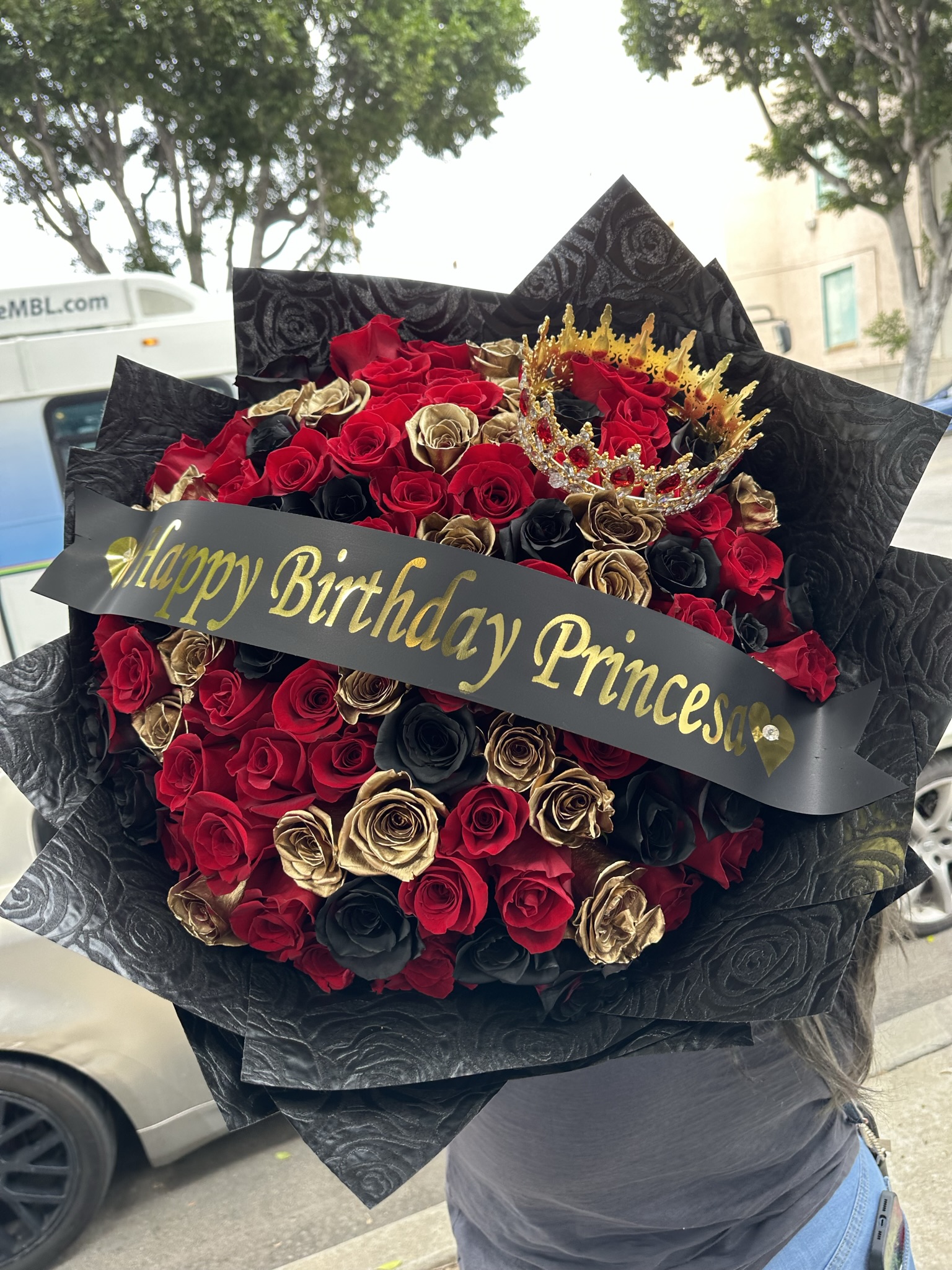 100 ROSES black red and gold wrapped in blackDark Gold Desire$350.00PriceExcluding Sales TaxQuantity*Add to Cart