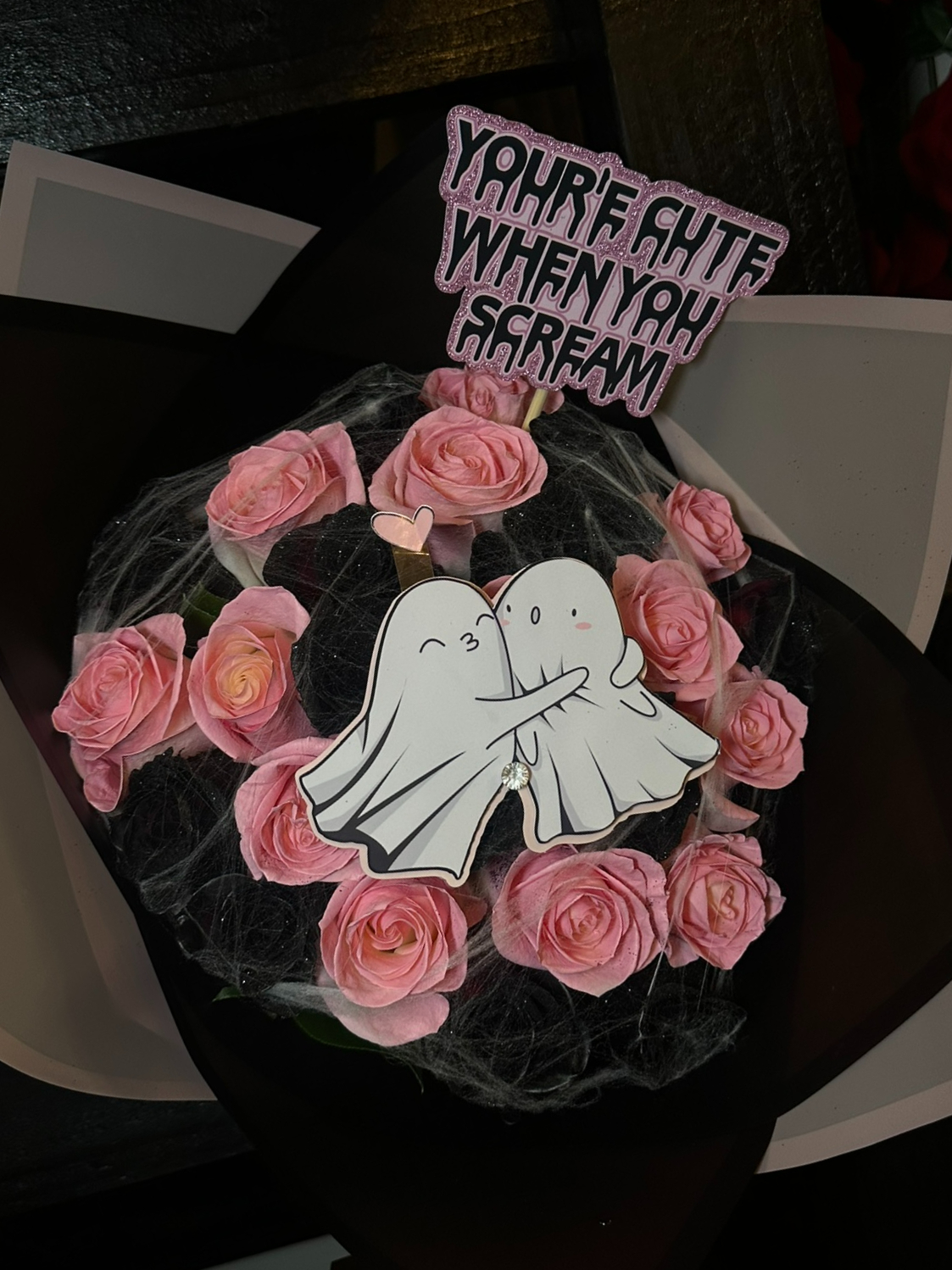 25 PINK AND BLACK ROSE BOUQUET WITH WEB AND "GHOST "CUT OUT AND SIGN INCLUDEDGHOST COUPLE BOUQUET$120.00PriceExcluding Sales TaxQuantity*Add to Cart