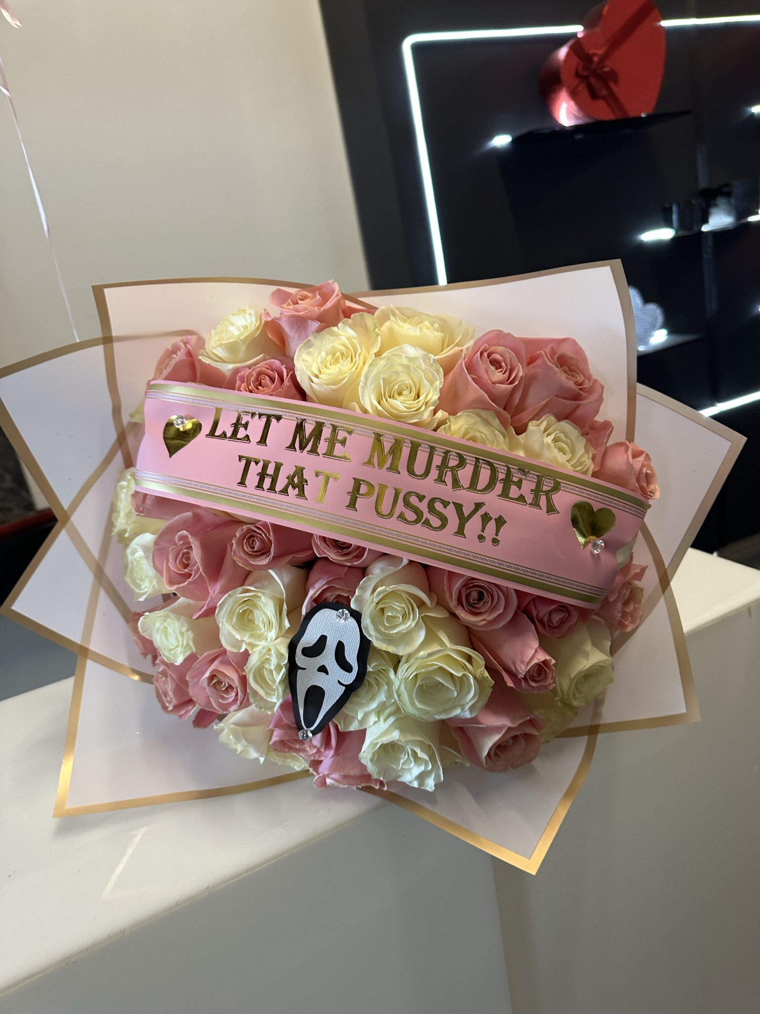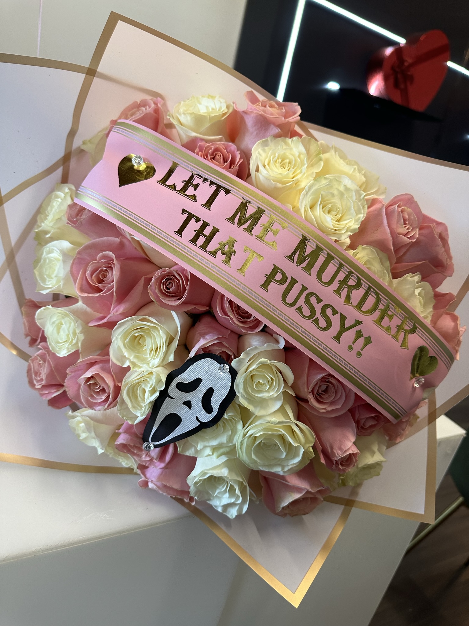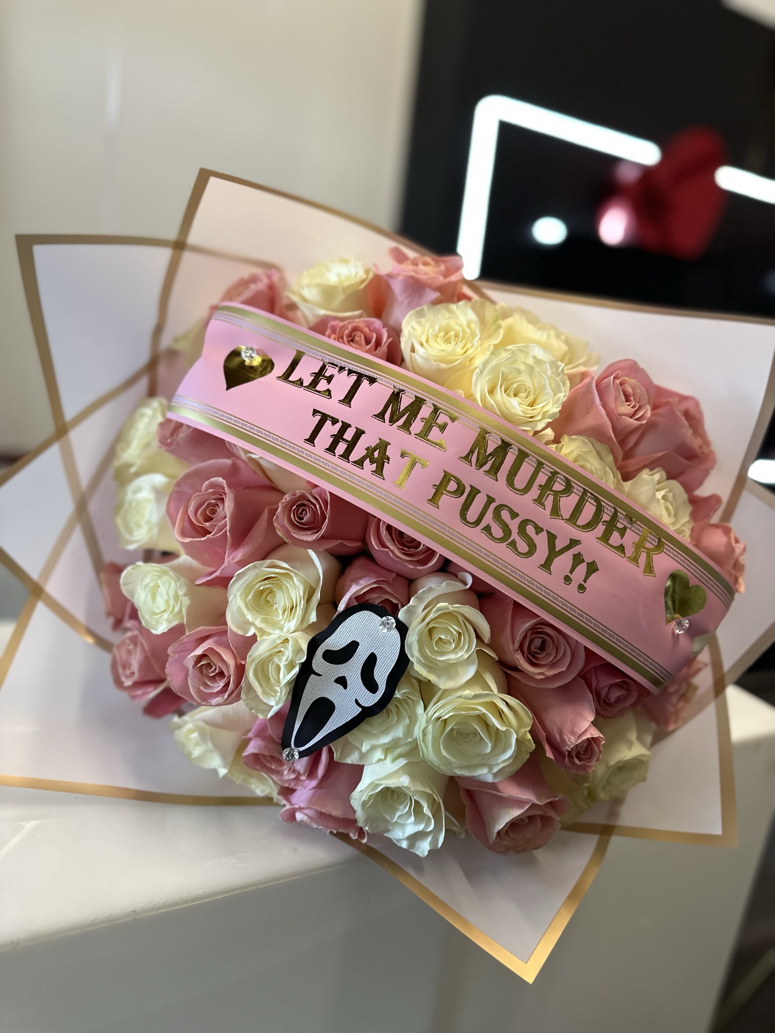 50 ROSES- pink and white $150*Scream face CUT OUT included $15Ghost Face XXX$190.00PriceExcluding Sales TaxQuantity*Add to Cart