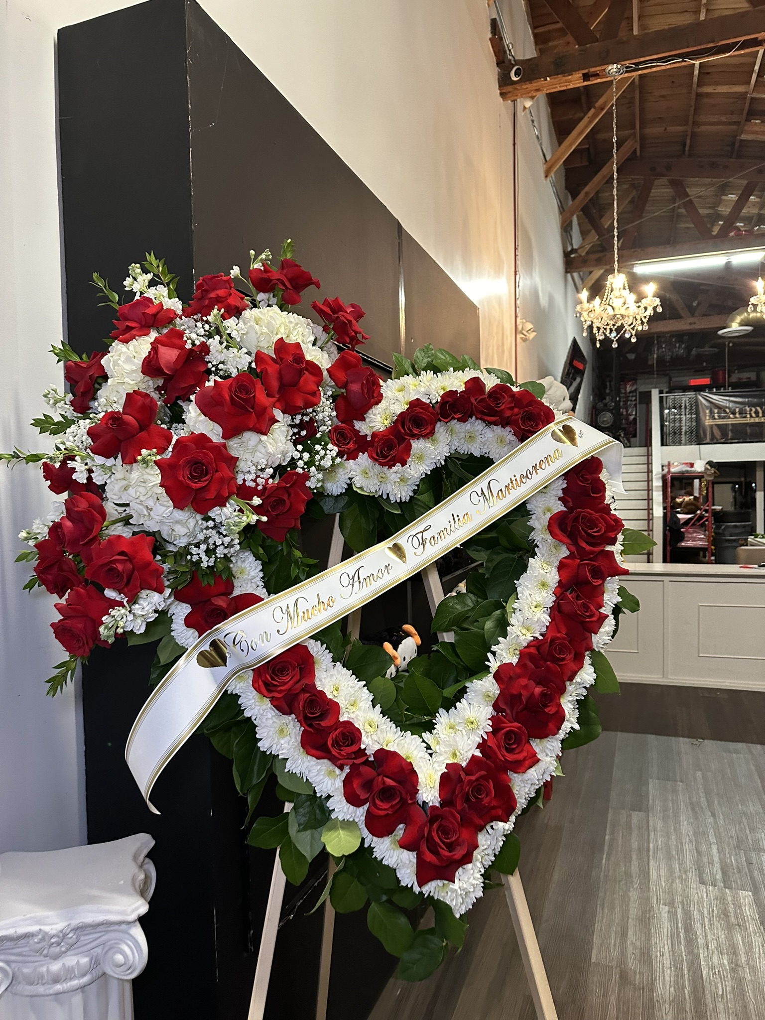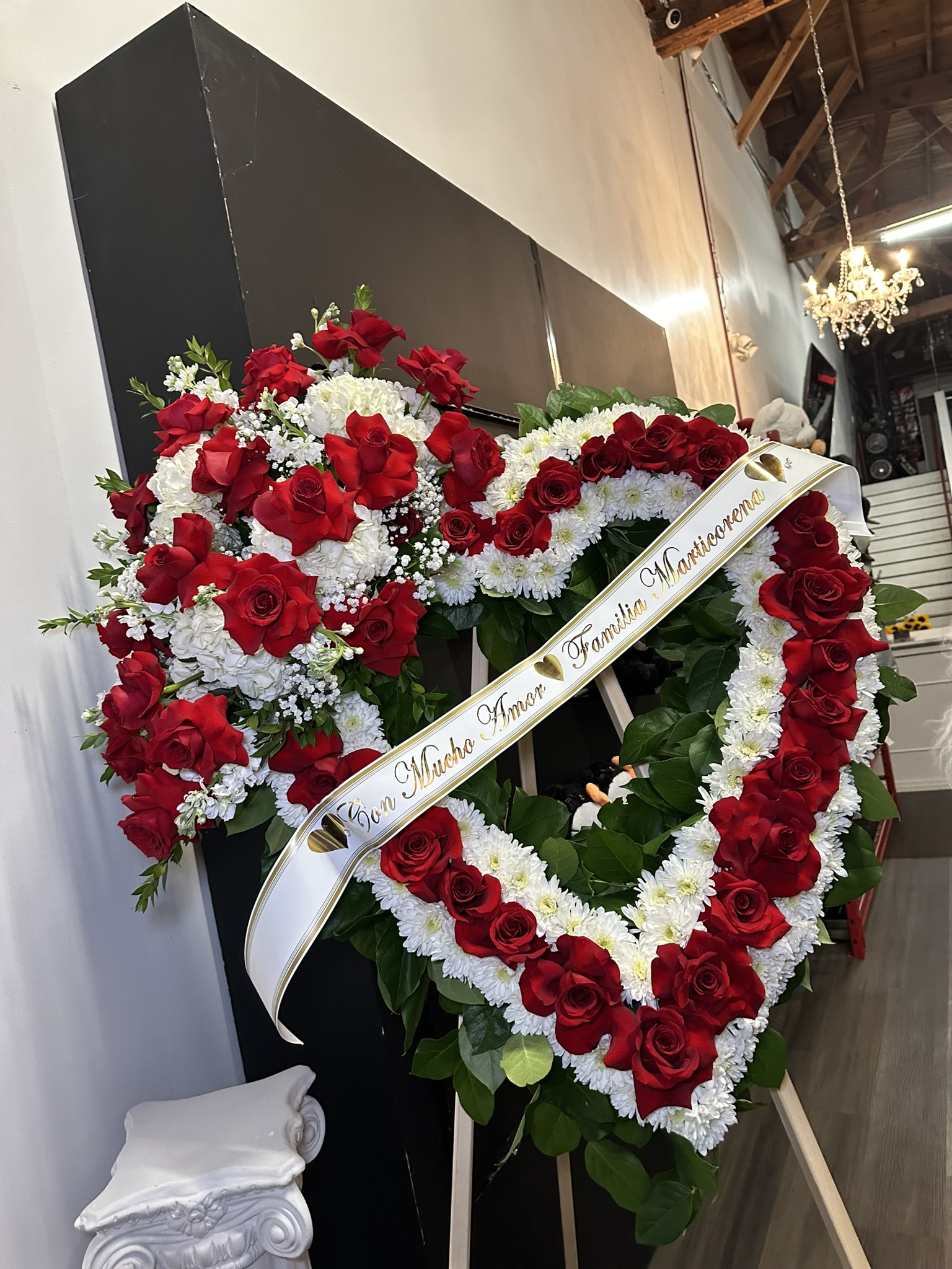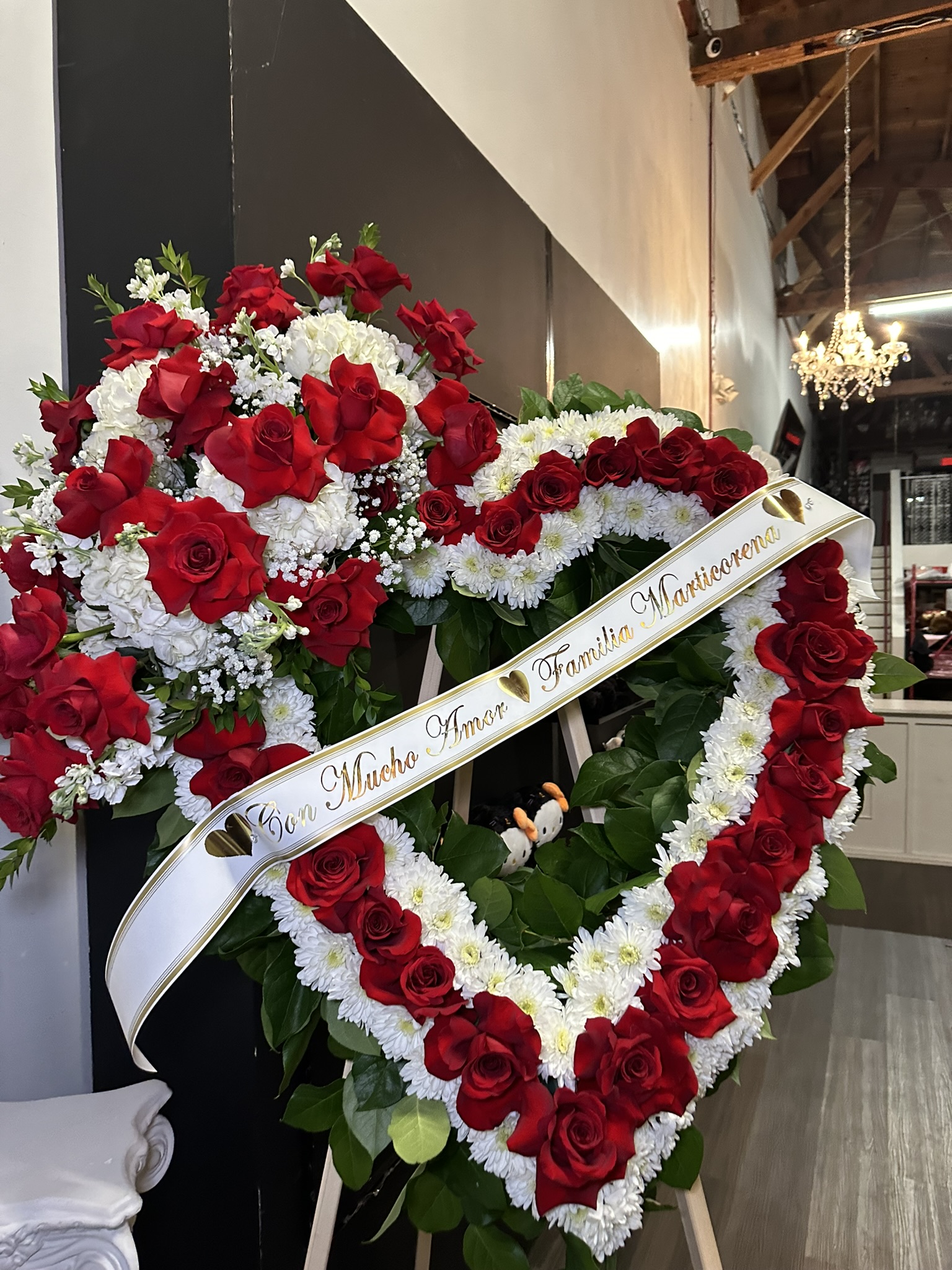 Large HeartRed roses and white flowersBaby breath accent / hydregeas/ Red rosesLARGE- OPEN HEART RED AND WHITE$380.00PriceExcluding Sales TaxQuantity*Add to Cart