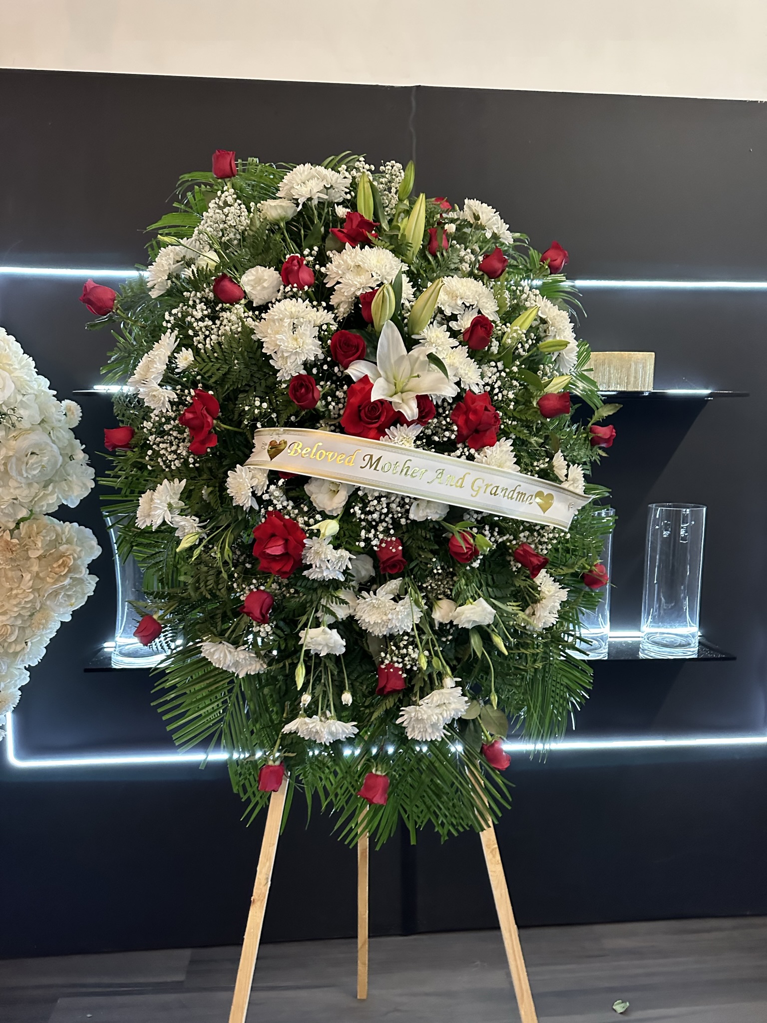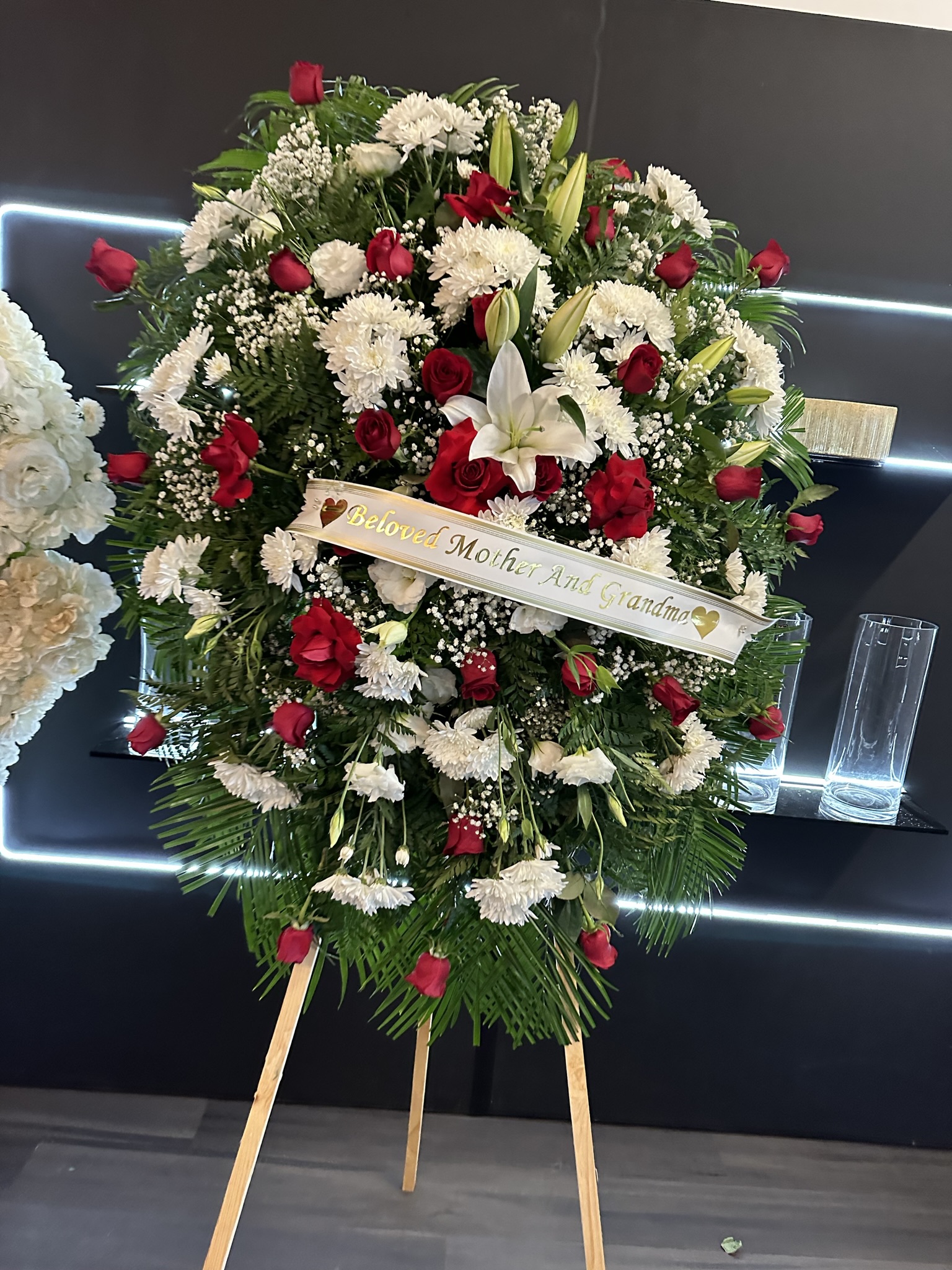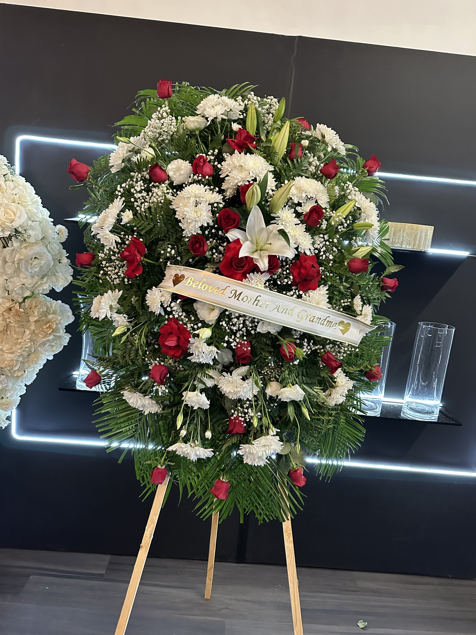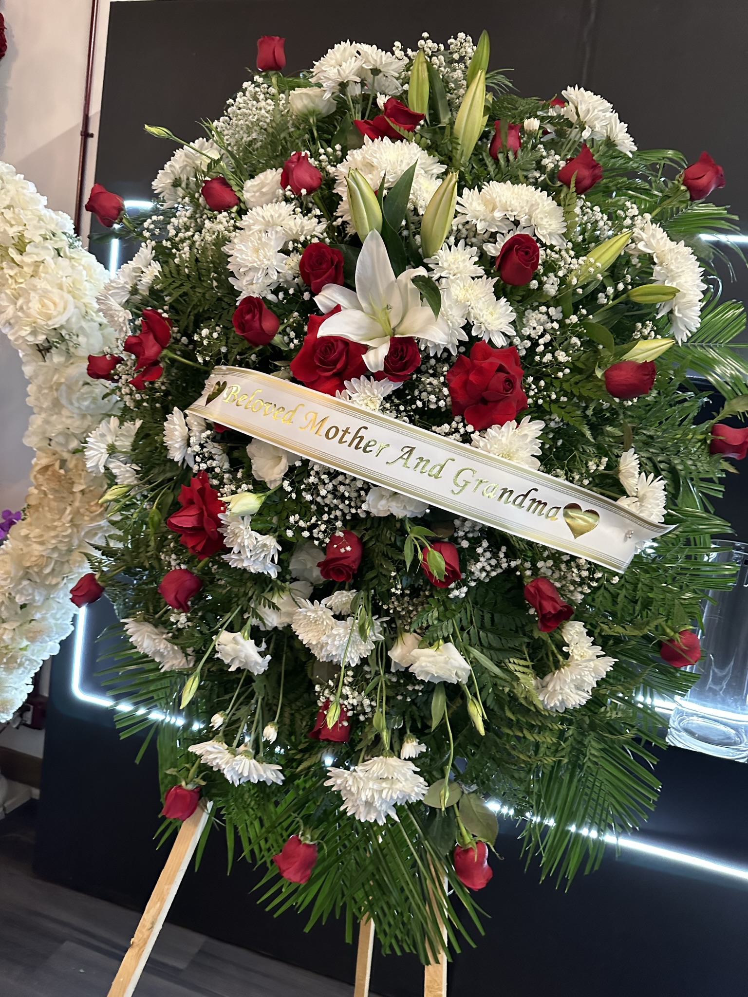 Large- Funeral SprayRed and white flowersLARGE- RED AND WHITE FLORAL SPRAY$380.00PriceExcluding Sales TaxQuantity*Add to Cart