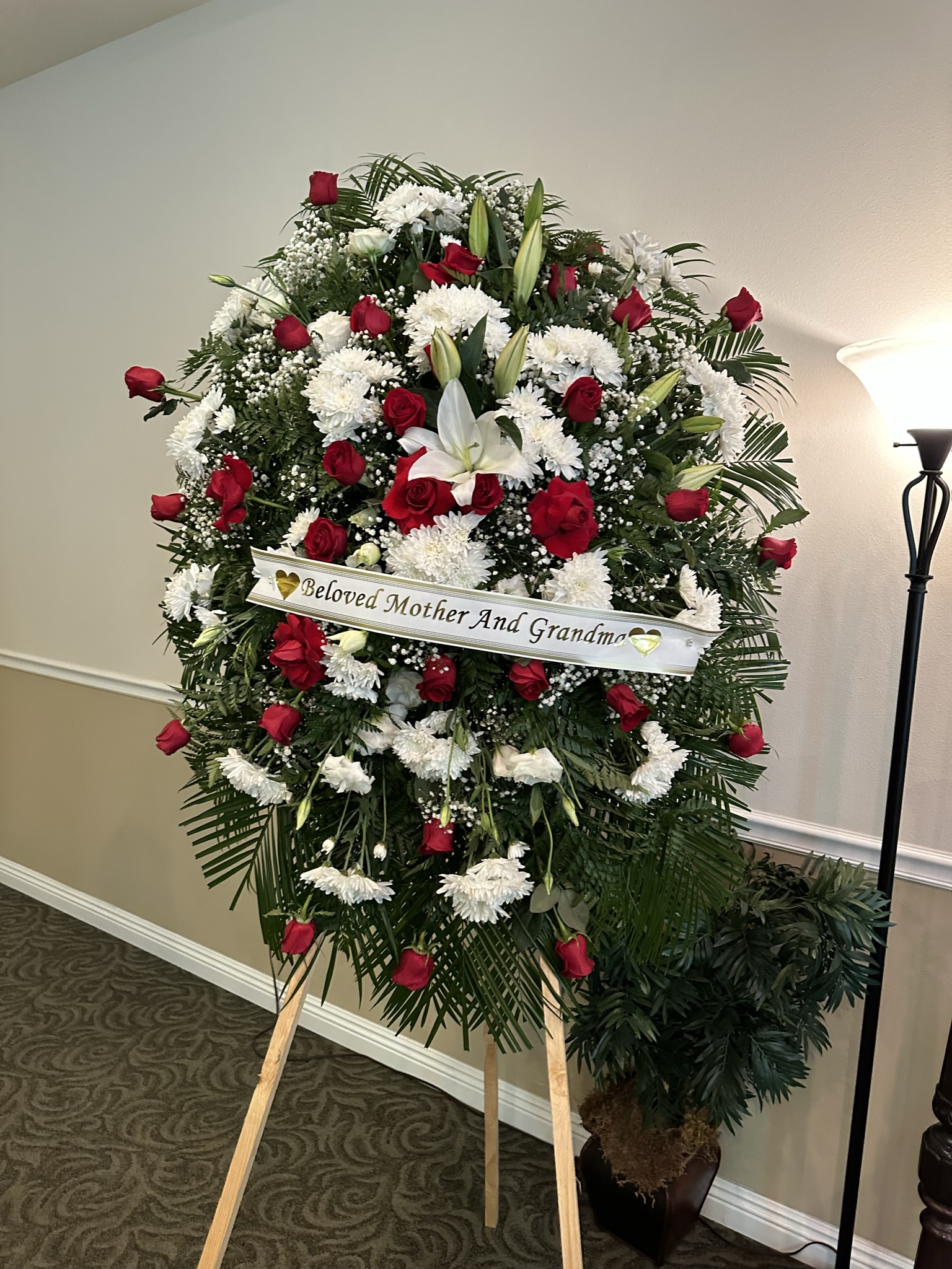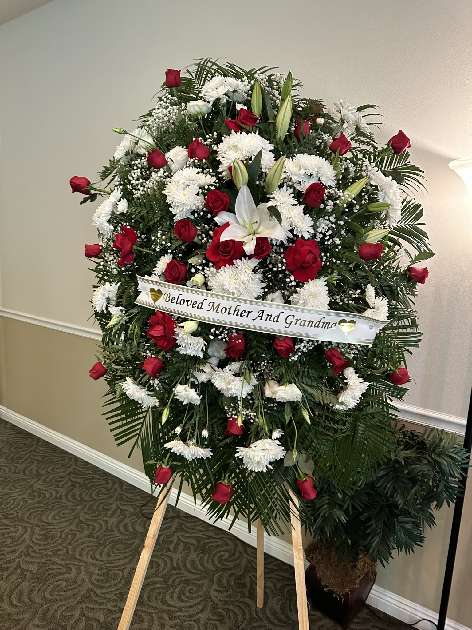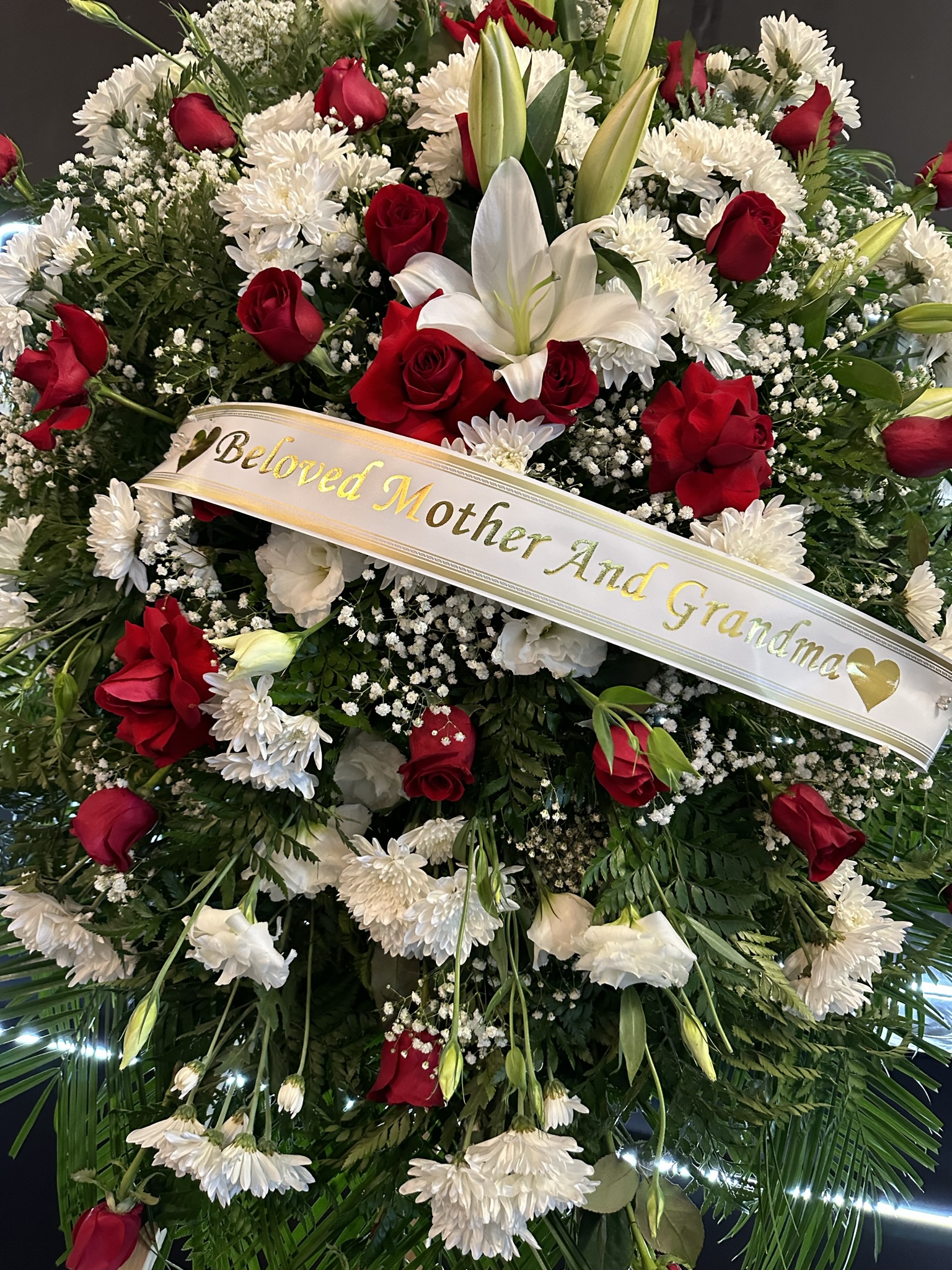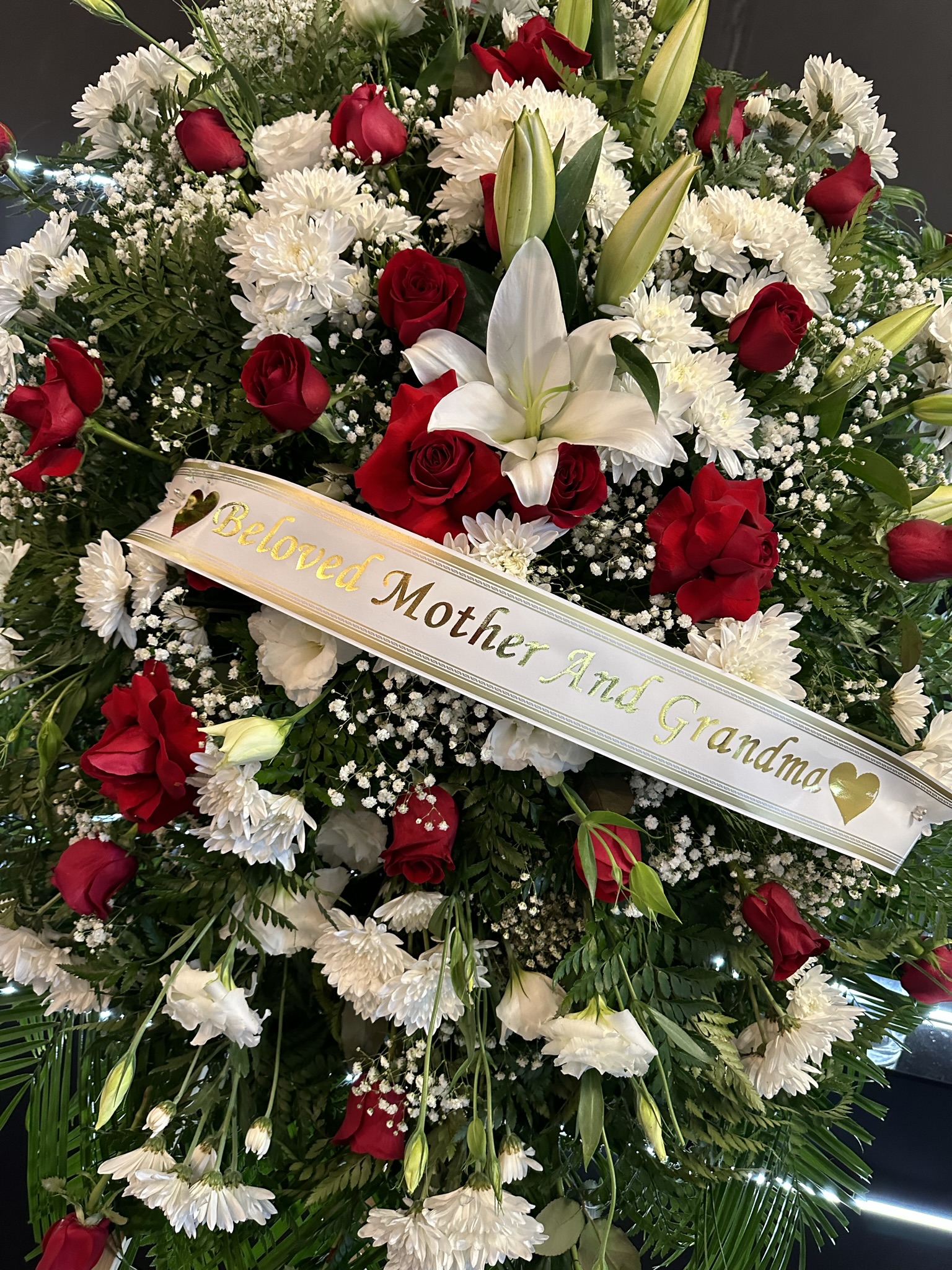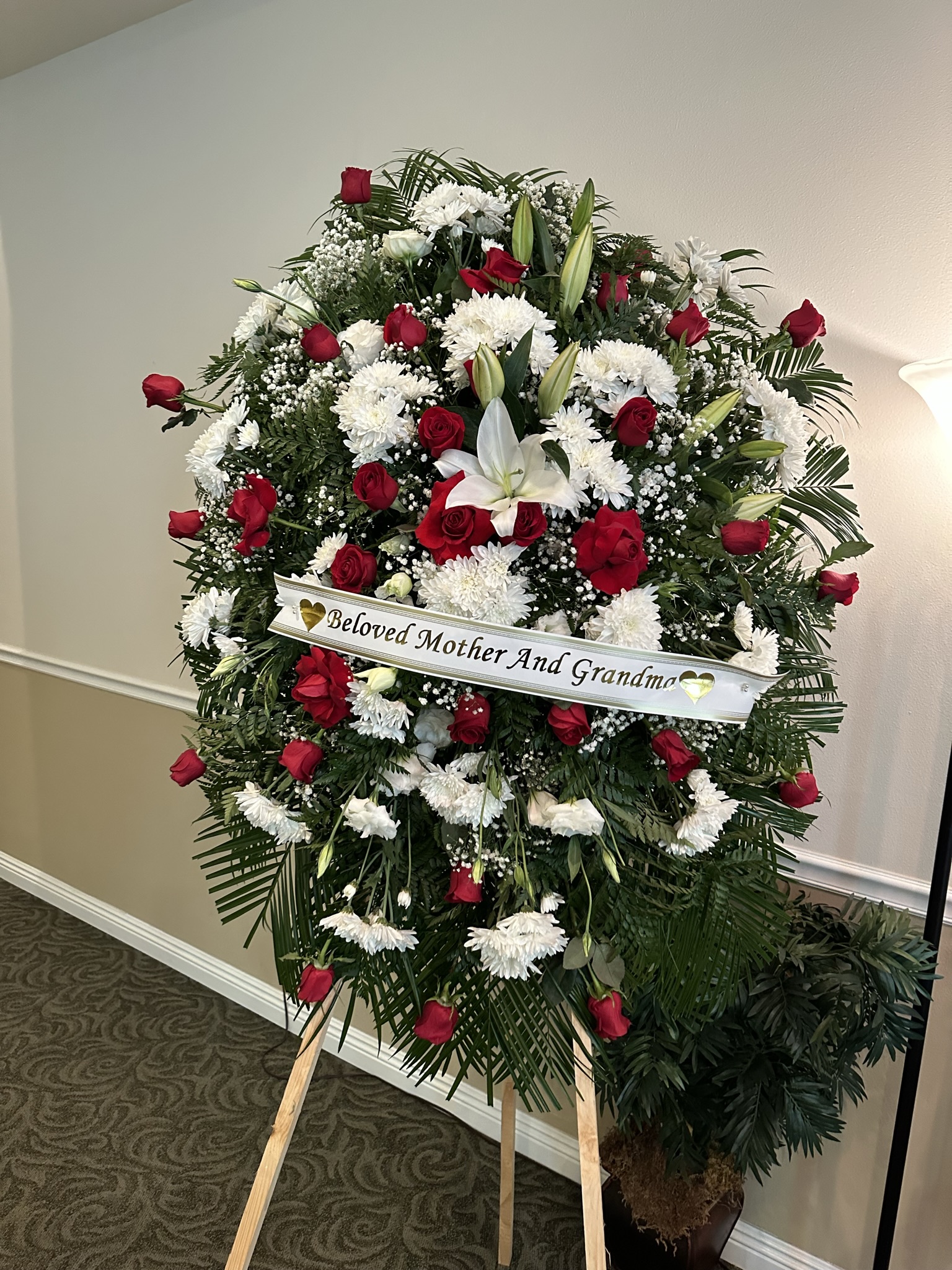 Large- Funeral SprayRed and white flowersLARGE- RED AND WHITE FLORAL SPRAY$380.00PriceExcluding Sales TaxQuantity*Add to Cart