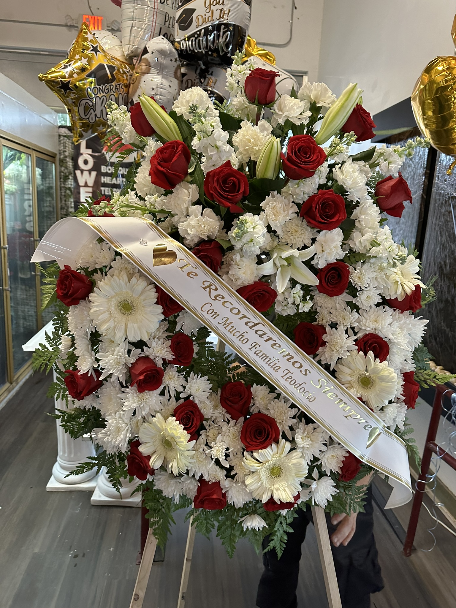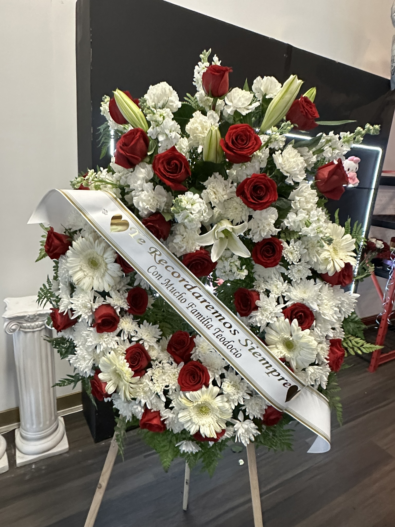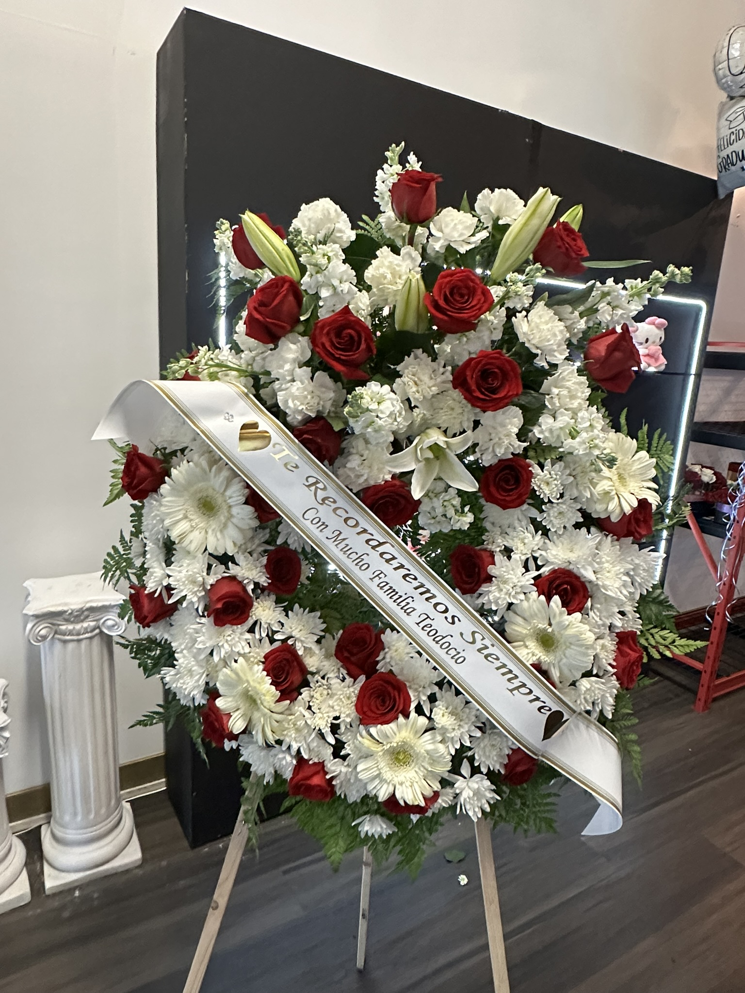Large Red and white funeral wreathFor Delivery Services please CALL us (562)205-5356LARGE- RED AND WHITE FUNERAL WREATH$380.00PriceExcluding Sales TaxQuantity*Add to Cart
