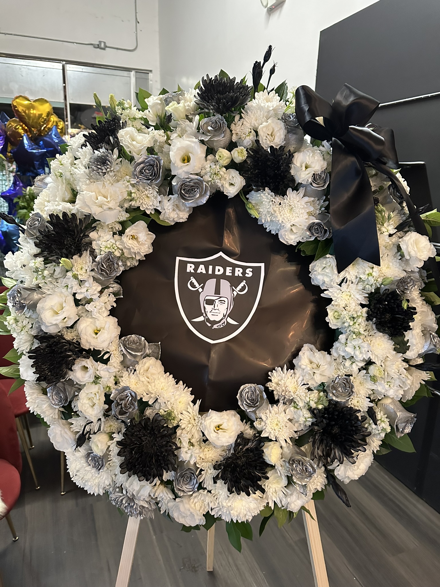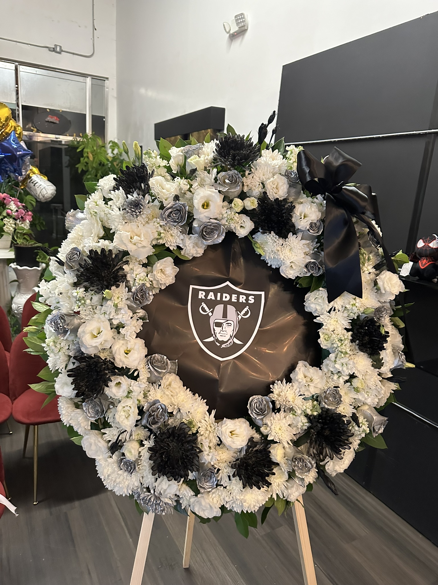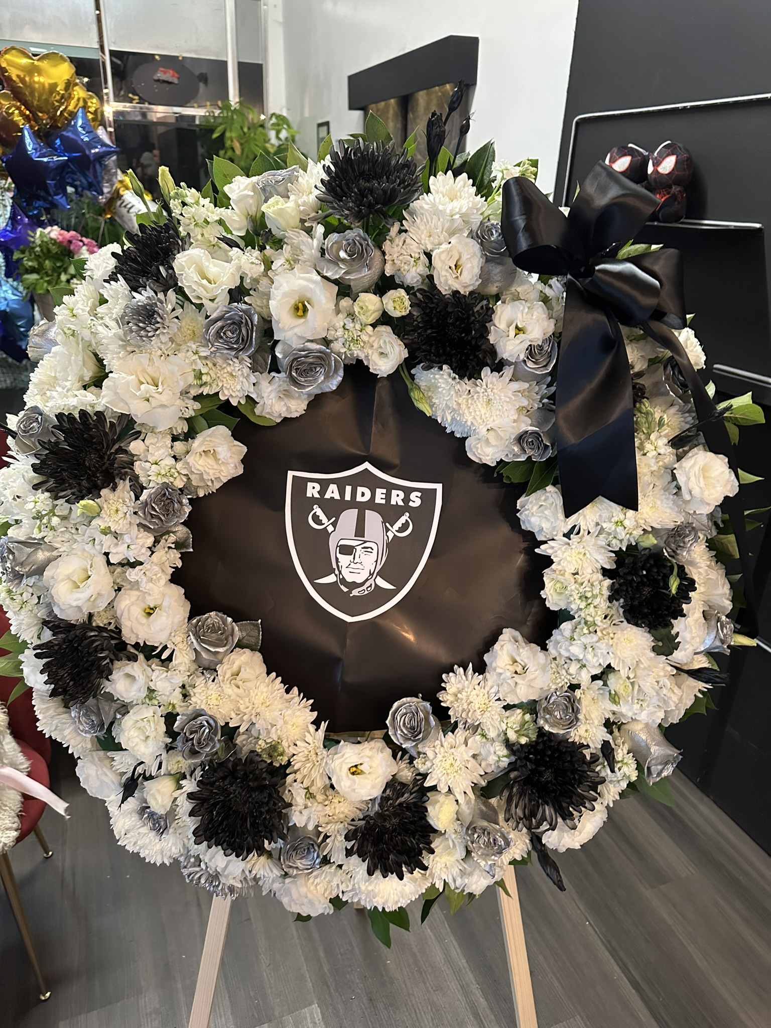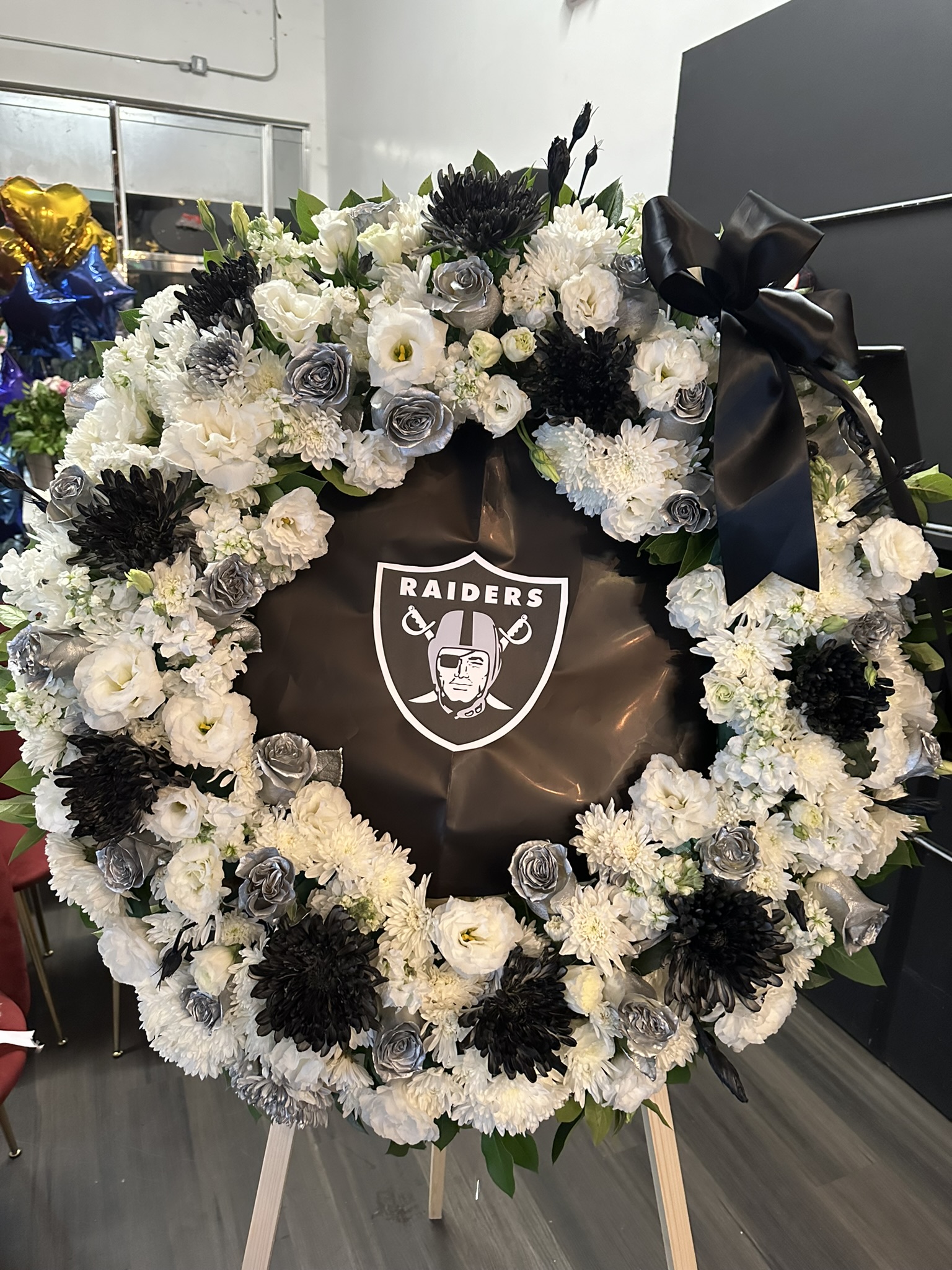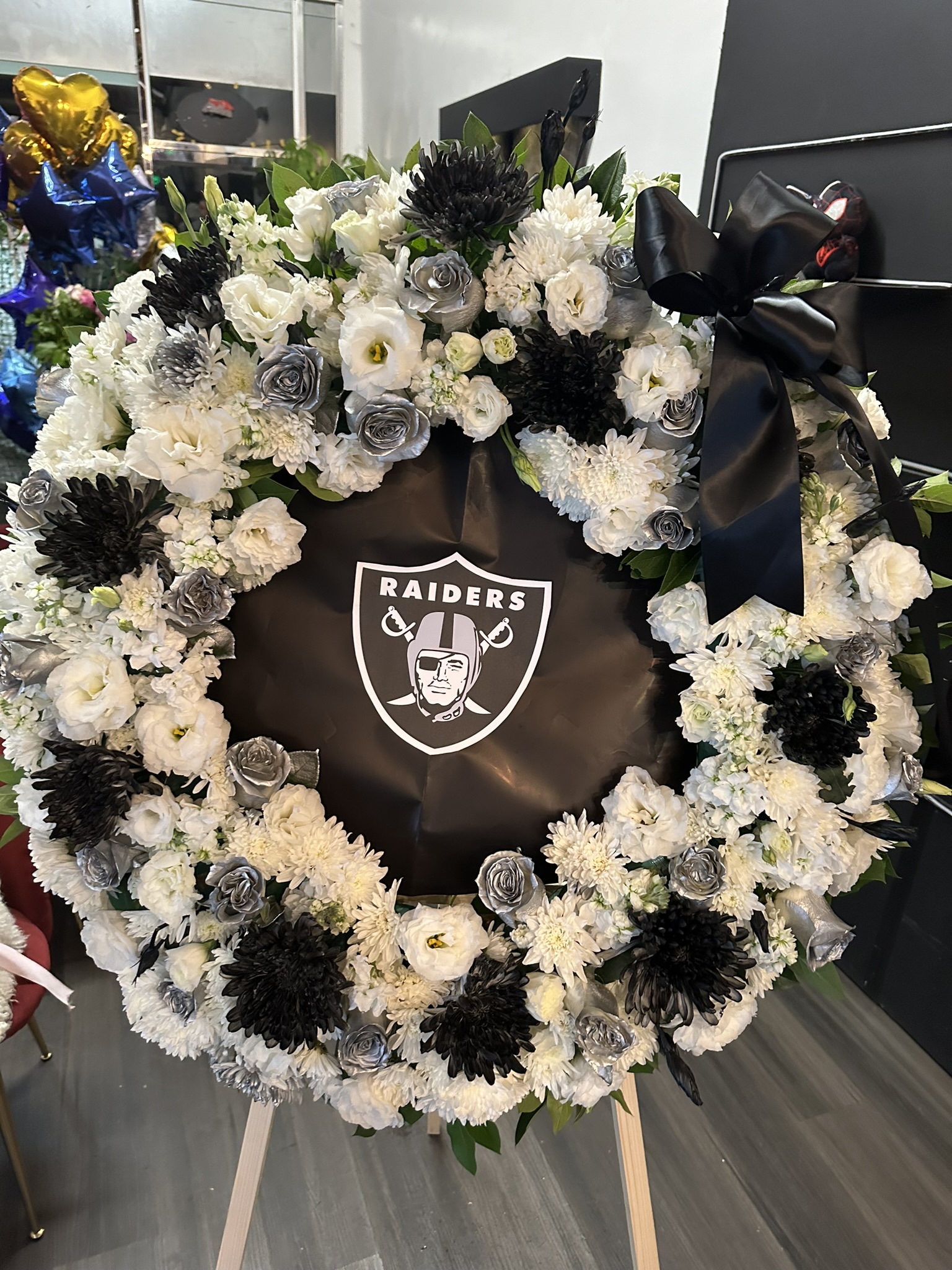 LargeNFL "RAIDERS" THEMED standing spray LARGE- SPORTS NFL "RAIDERS" WREATH$390.00PriceExcluding Sales TaxQuantity*Add to Cart