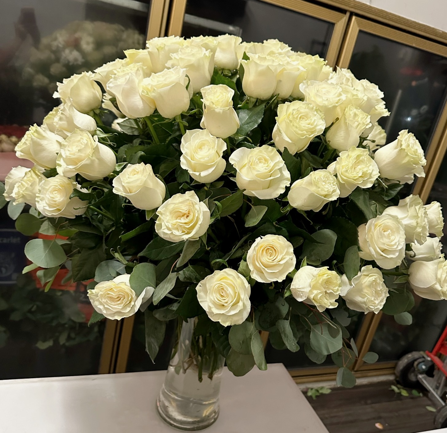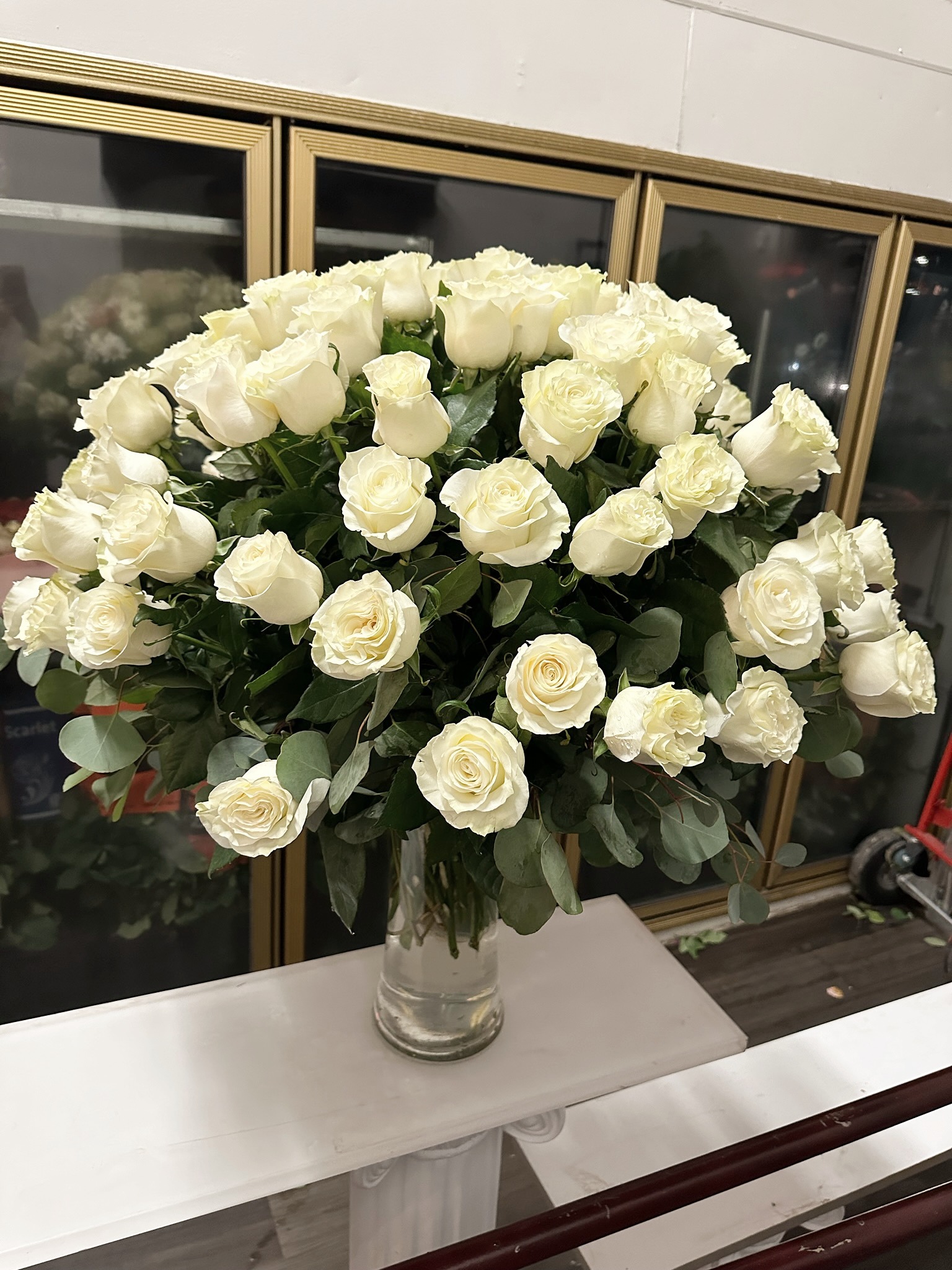 100 White rose mixed with Eaucalyptus in a long stem glass vaseLean on Me$340.00PriceExcluding Sales TaxQuantity*Add to Cart