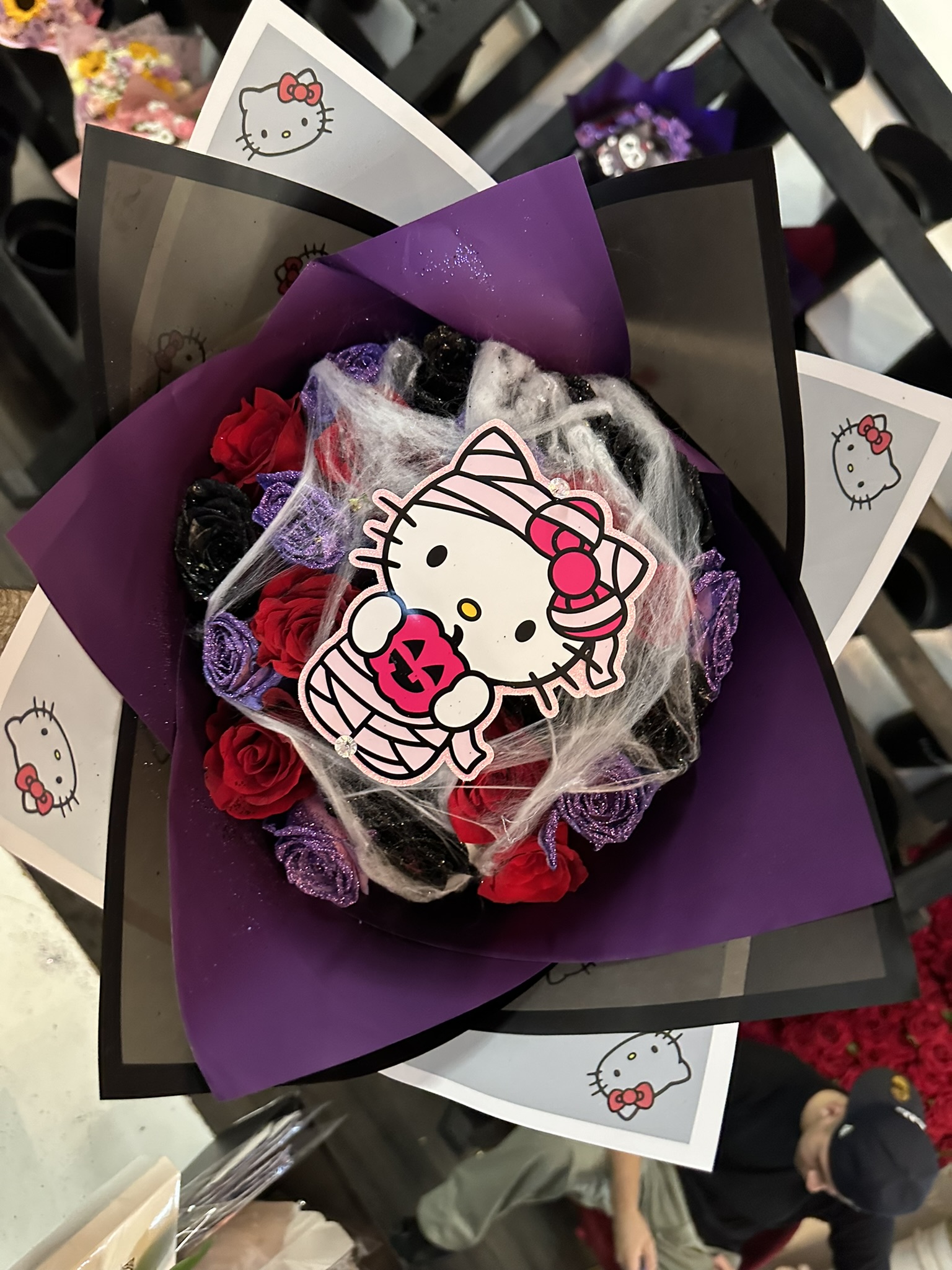 25 ROSE BOUQUET RED PURPLE AND BLACK WITH WEB AND "MUMMY HELLO KITTY" INCLUDEDMEDIUM MUMMY HELLO KITTY$110.00PriceExcluding Sales TaxQuantity*Add to Cart