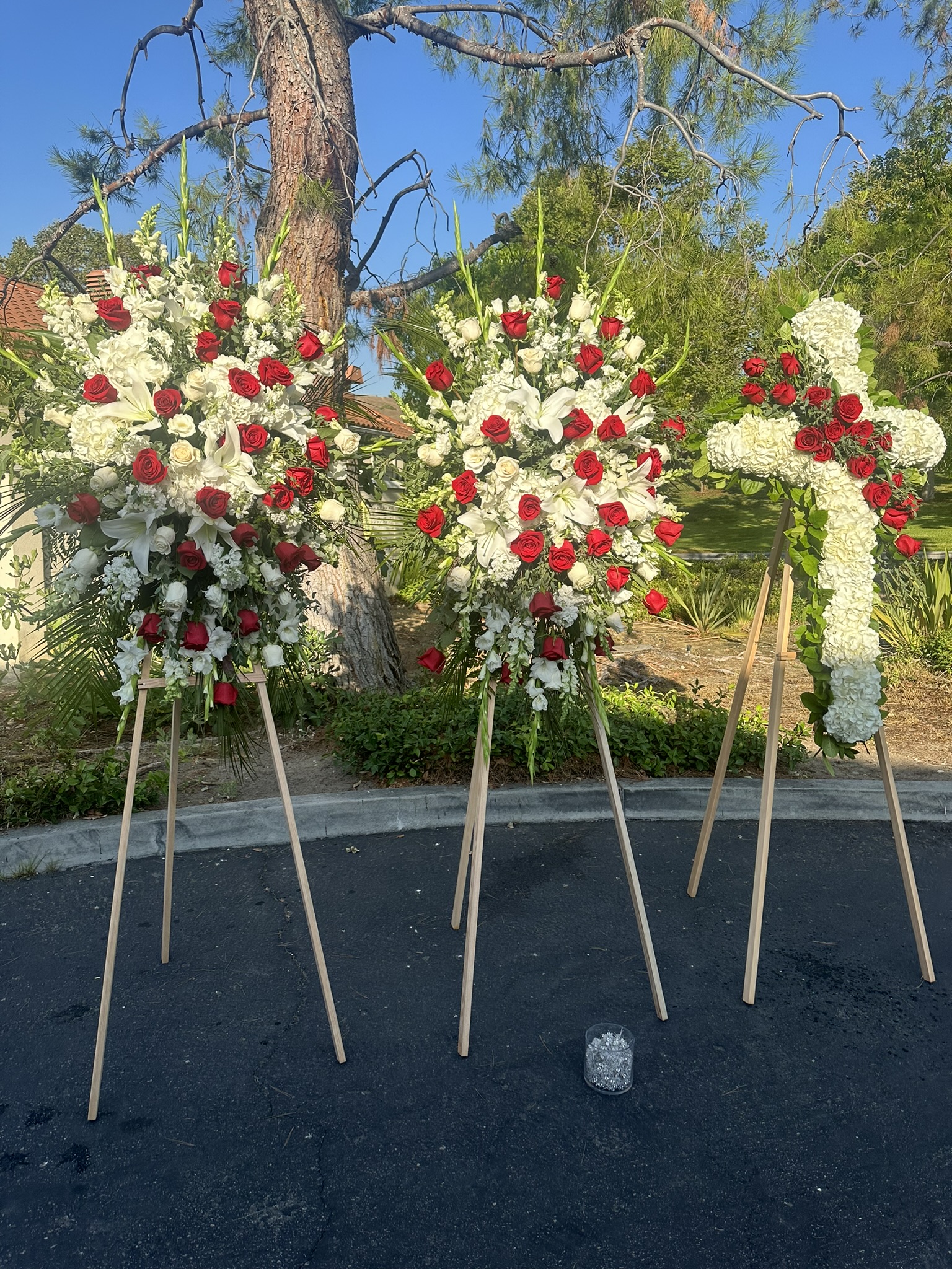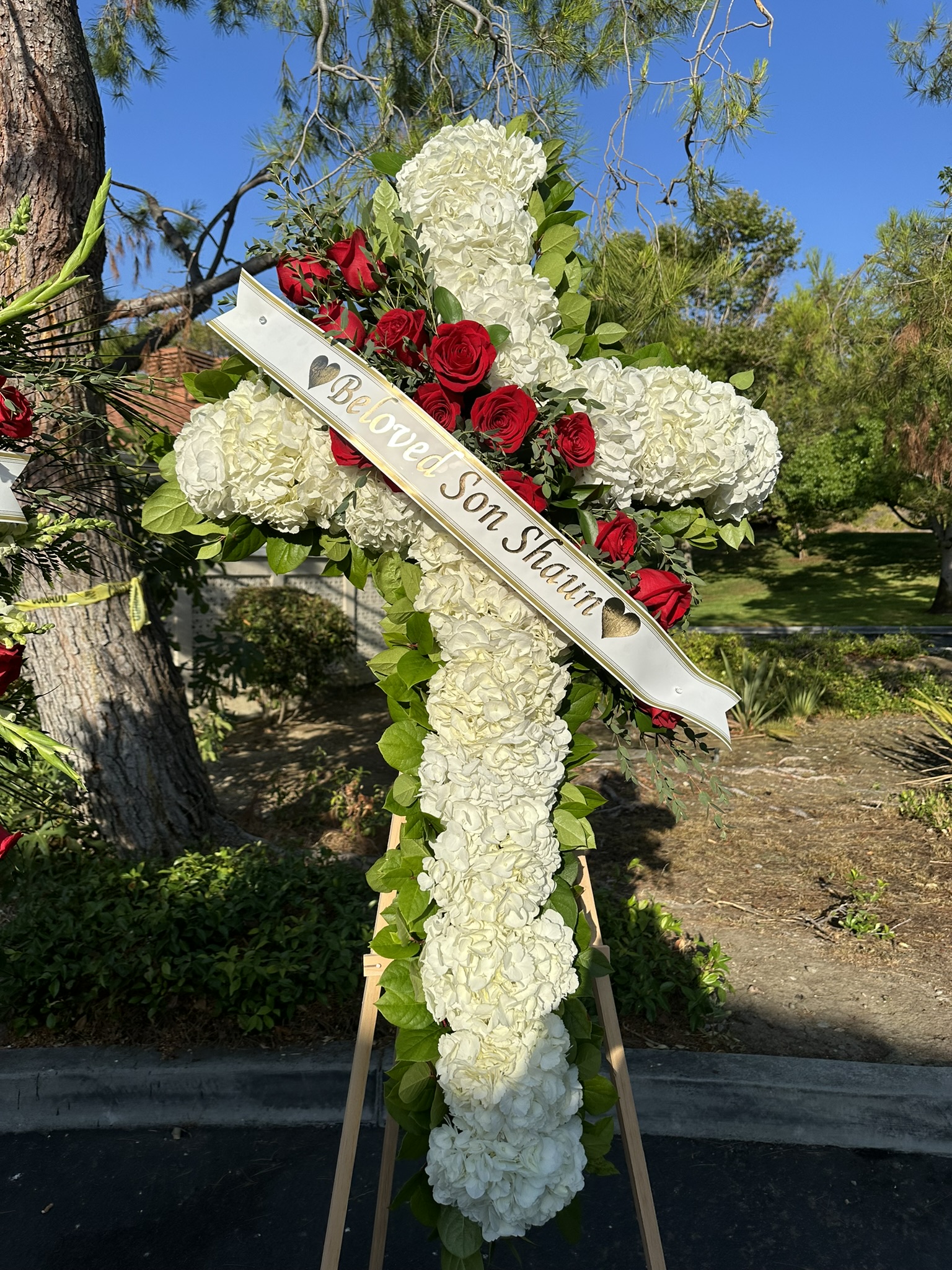 Meidum White Cross with RED ACCENT MEDIUM- WHITE AND RED FUNERAL CROSS$270.00PriceExcluding Sales TaxQuantity*Add to Cart