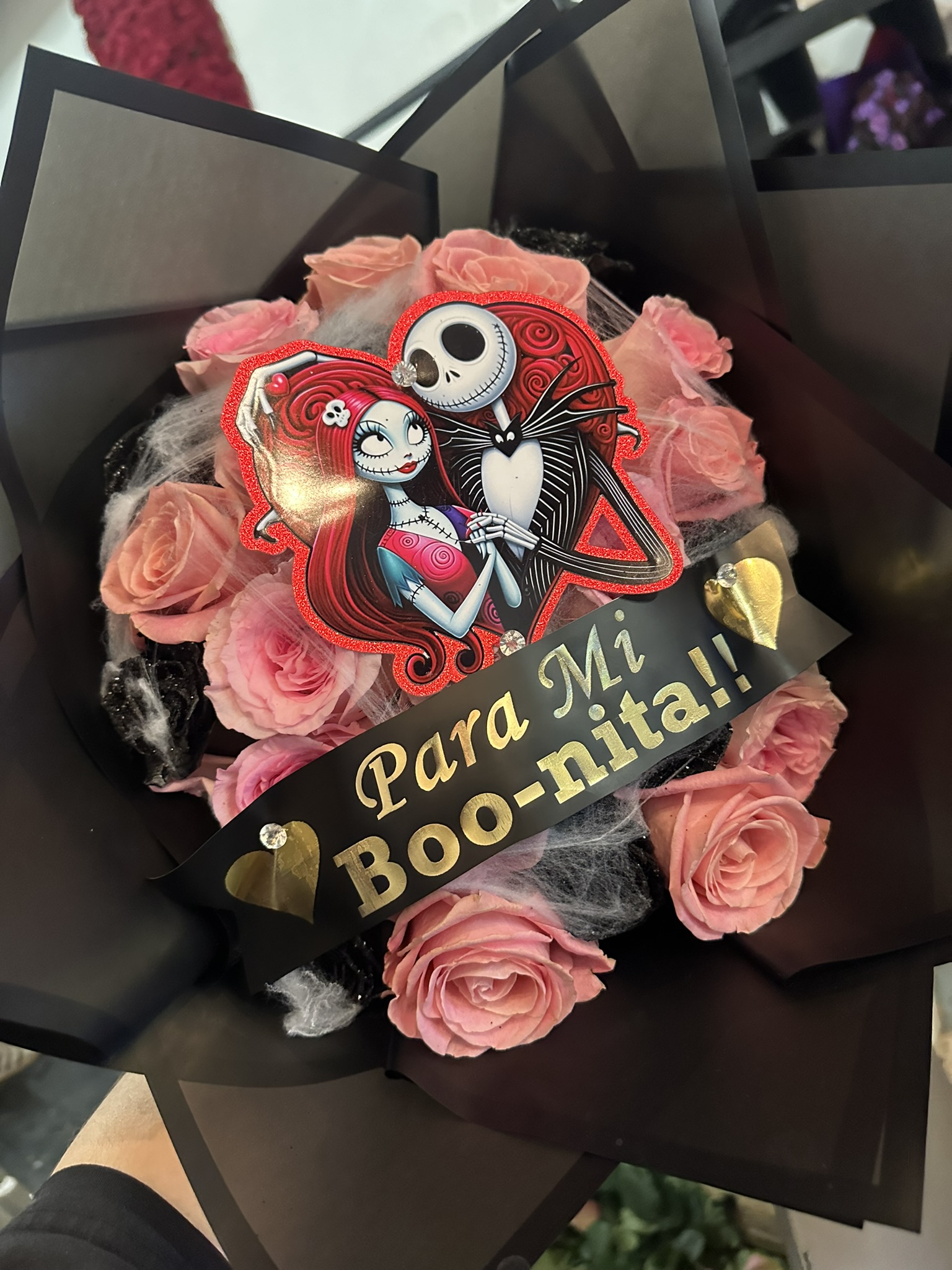 25 PINK AND BLACK ROSES BOUQUET WITH WEB AND "JACK AND SALLY " CUT OUT BANNER INCLUDEDNIGHTMARE BEFORE CHRISTMAS$120.00PriceExcluding Sales TaxQuantity*Add to Cart