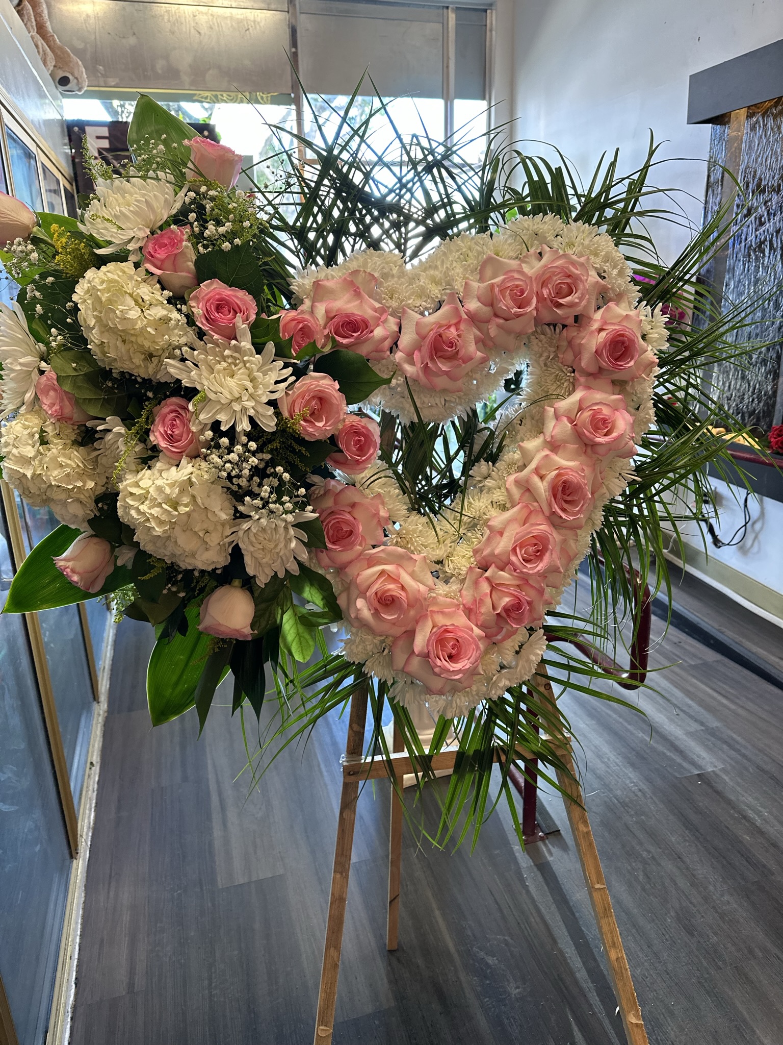 SMALL- Pink rose with white SMALL- SOFT PINK FLORAL HEART$180.00PriceExcluding Sales TaxQuantity*Add to Cart